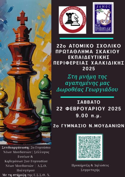 22ο ΑΤΟΜΙΚΟ ΣΧΟΛΙΚΟ ΠΡΩΤΑΘΛΗΜΑ ΣΚΑΚΙΟΥ ΕΚΠΑΙΔΕΥΤΙΚΗΣ ΠΕΡΙΦΕΡΕΙΑΣ ΧΑΛΚΙΔΙΚΗΣ 2025 – ΣΑΒΒΑΤΟ 22 ΦΕΒΡΟΥΑΡΙΟΥ 2025