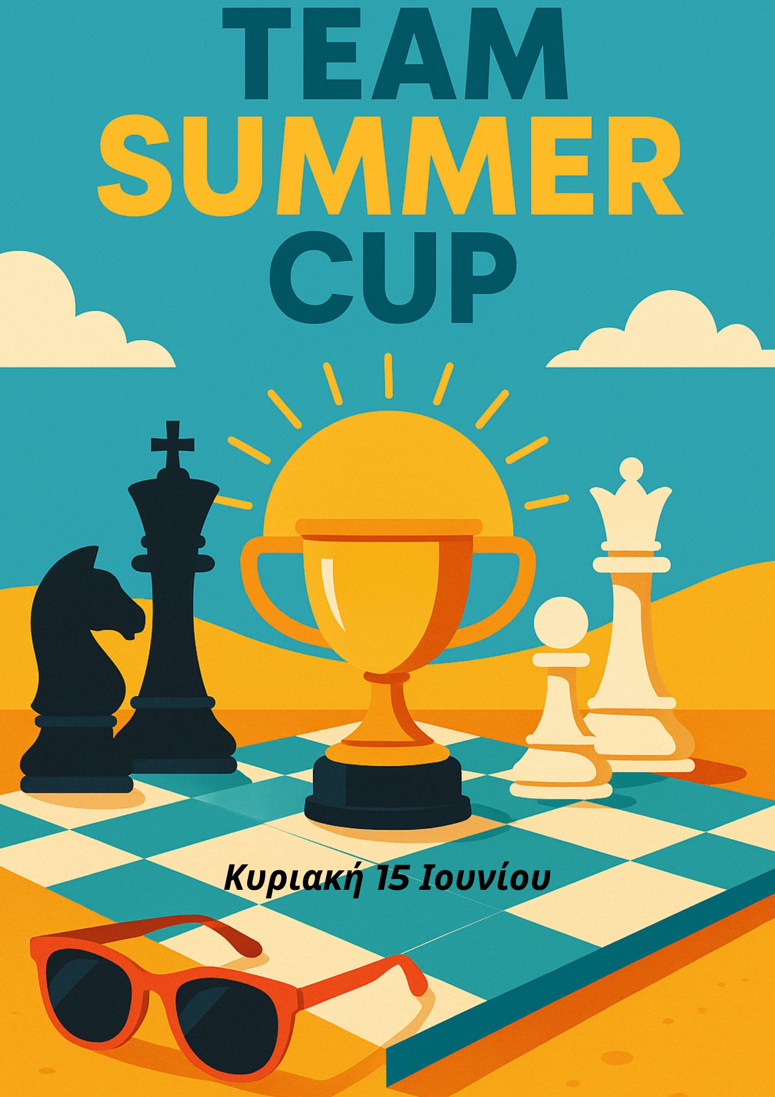 Η Ένωση Σκακιστών Καλαμαριάς και η Ένωση Σκακιστών Θεσσαλονίκης, με τη στήριξη της Σκακιστικής Ακαδημίας «Γ. Ιωακειμίδης» και της Ε.Σ.Σ.Θ.-Χ., διοργανώνουν το τουρνουά Team Summer Cup , στο χώρο των Συλλόγων μας (Παπαντωνίου 14 , Καλαμαριά) το απόγευμα της Κυριακής 15 Ιουνίου 2025.
